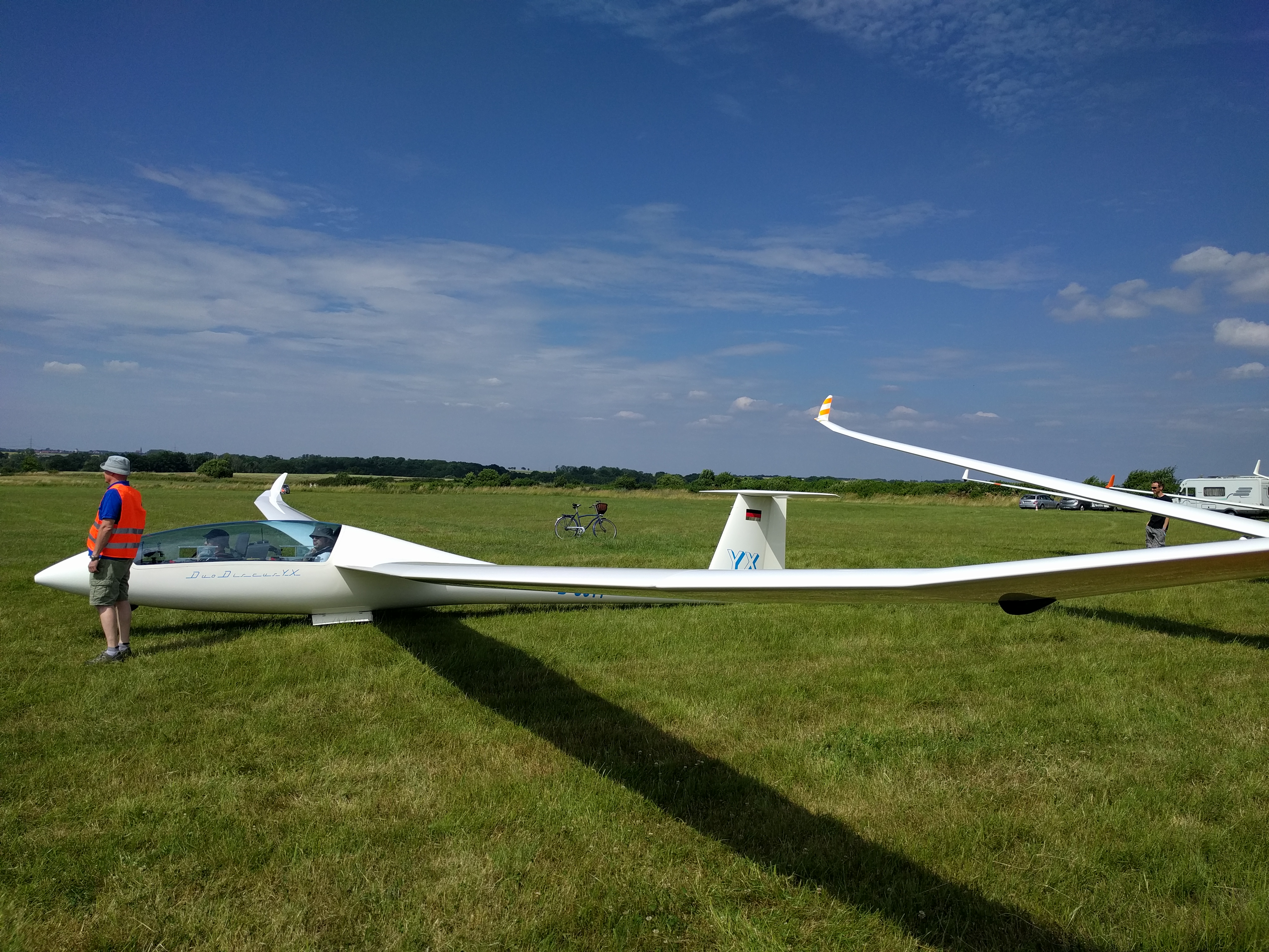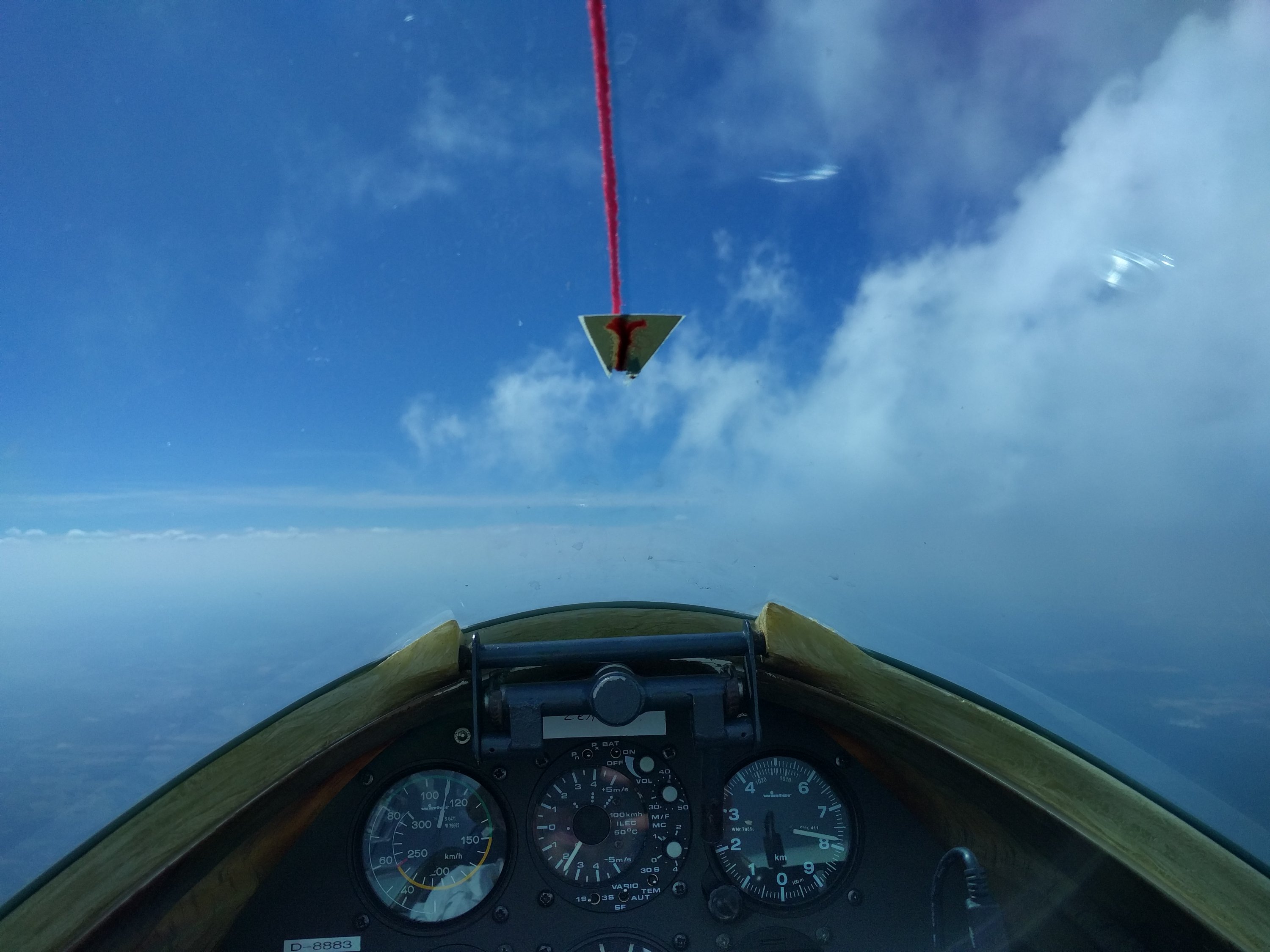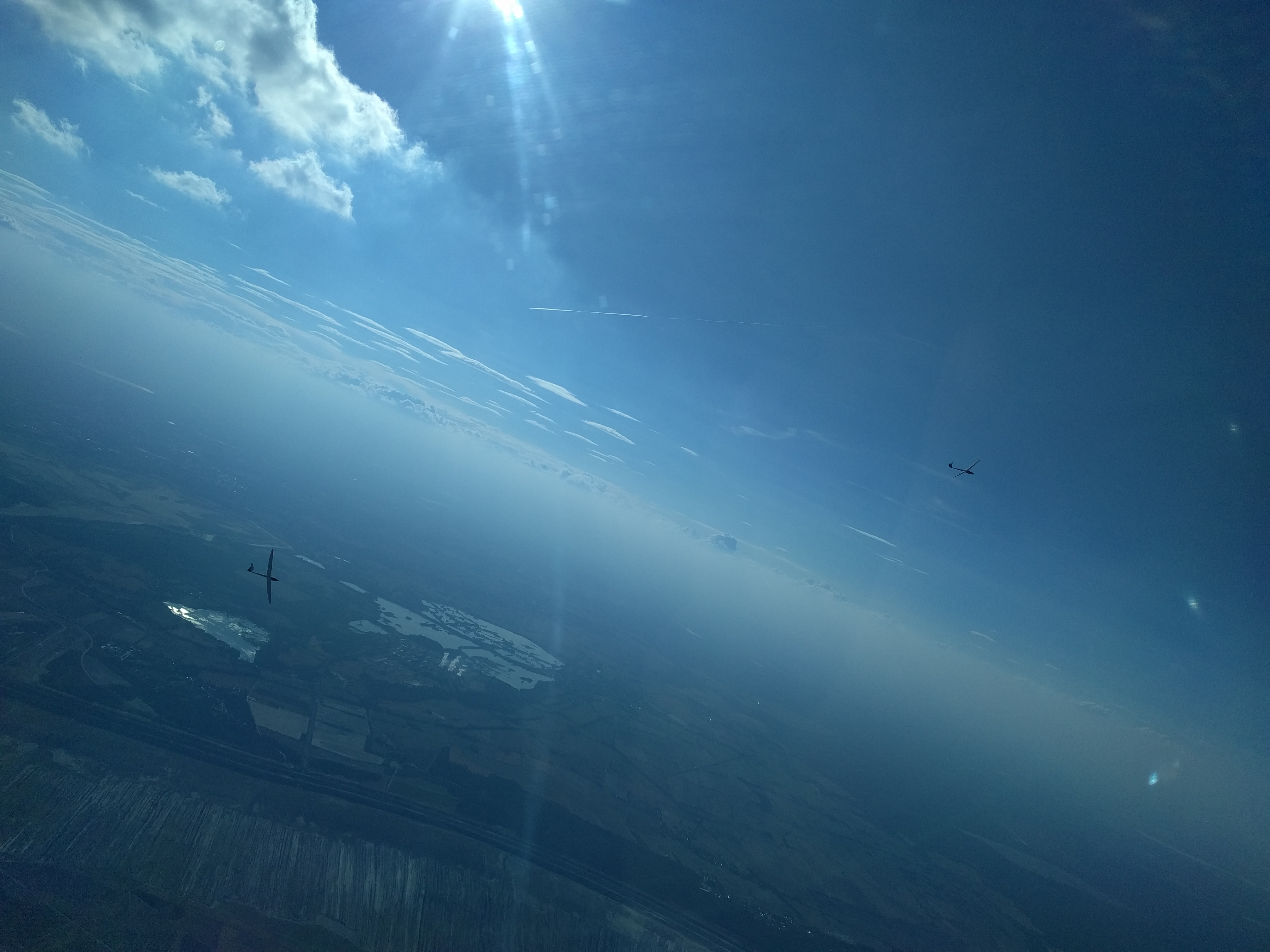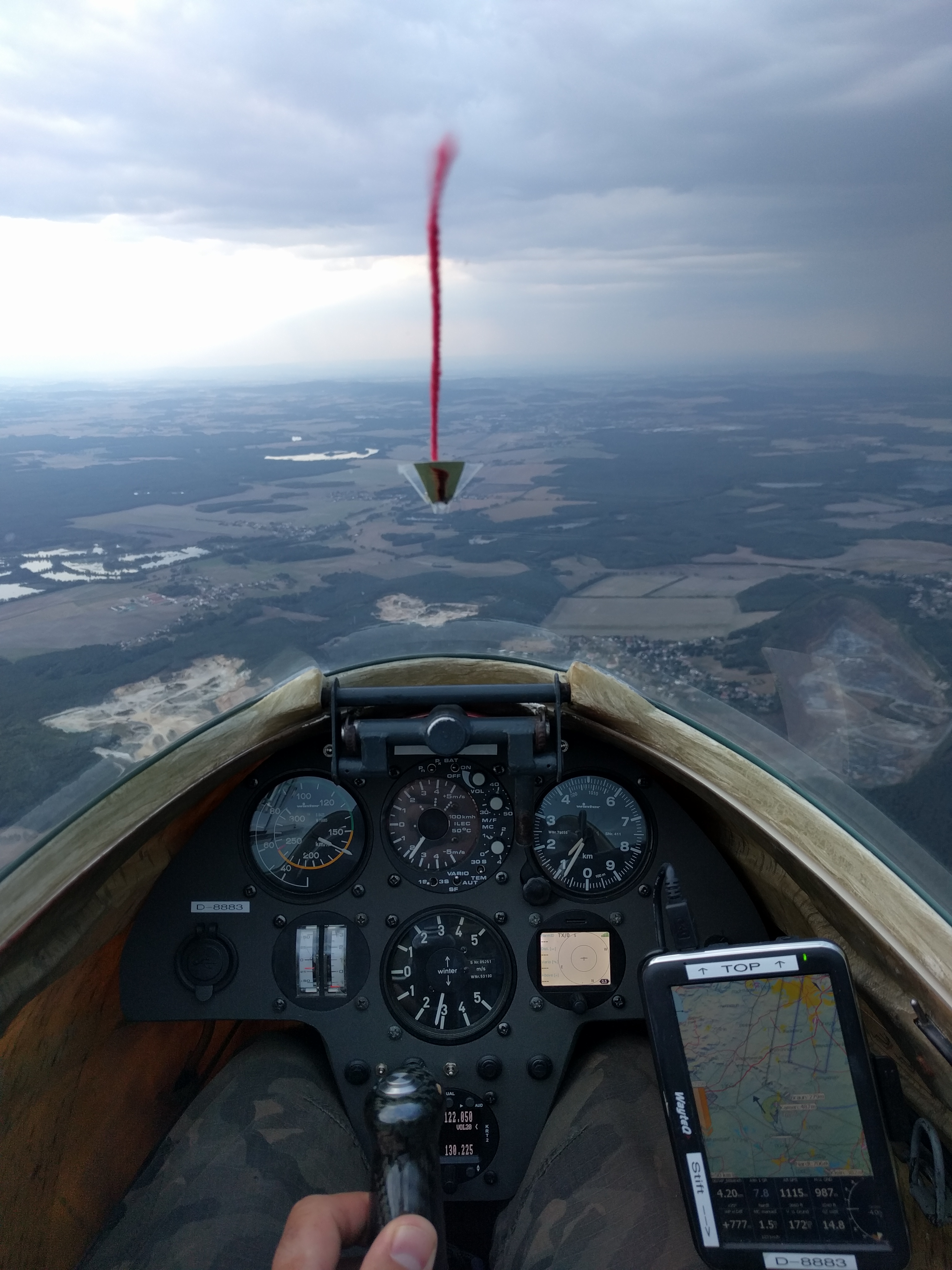 Am zweiten Tag hatten wir eine Ziel-Rückkehr-AAT mit 1:30, weil das Wetter hier etwas schlechter wurde. Hat aber mega-viel Spaß gemacht, auch weil wir teilweise mit 150 km/h durch die Wolkenstraßen geschossen sind, was echt mega viel Spaß gemacht hat. Was ich hierbeit gelernt habe ist, das man bei stärkerem Wind und entsprechenden Wolkenstraßen wirklich Gas geben kann und nur noch unter den Wolken “herschwabbelt” ohne viel zu kurbeln.