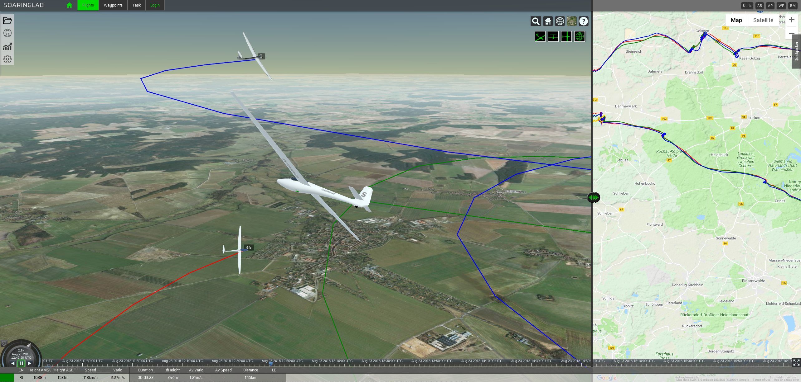 Gefachsimpelt und erzählt wurde auch viel über Wellenflug in Frankreich, was wirklich sehr interessant ist. Gestern habe ich auch noch zur freunde einiger eine sehr geile Browser-Software gefunden, die Flightlogs in 3D und sogar mit entsprechendem Flugzeugmodell abspielen kann: soaringlab.eu (läuft bei mir allerdings nur im Chromium). Ideal zur Analyse und Auswertung von Fluglogs, was, wie ich hier ebenso auch gelernt habe, sehr wichtig ist, sich mental nochmal in Flüge von einem selbst oder auch von anderen hineinzuversetzen
