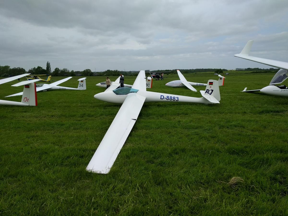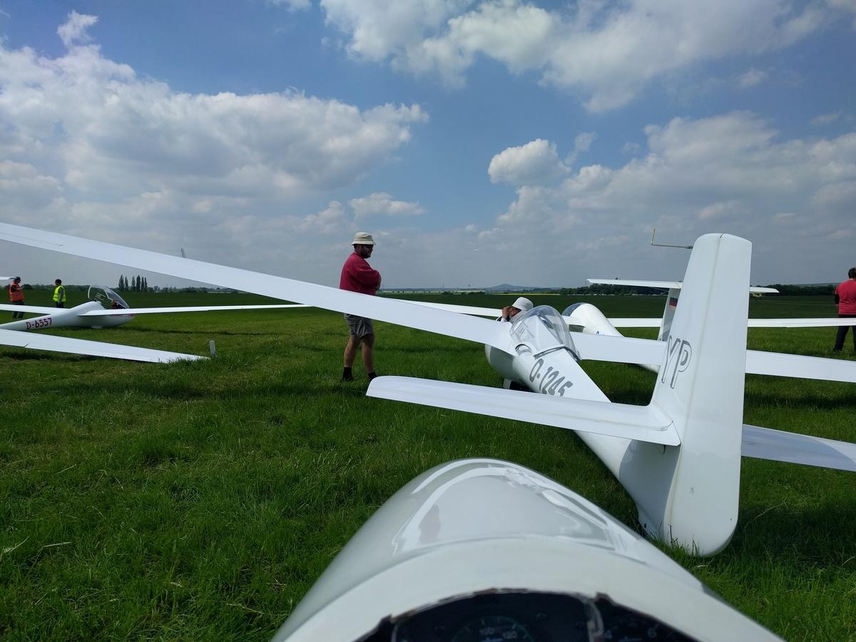 Am 15. Mai ging es dann Aufgrund Neutralisierung unseres Wettbewerbs nach Jena. Dort war ebenfalls der Jena Cup, eine Qualifikation für die Segelflug-WM, gerade im vollen Gange, obwohl die wegen des Wetters auch neutralisiert haben, als wir ankamen. Haben uns ein bisschen dort umgeschaut und mit Sven, dem Wettbewerbsleiter, der auch ein guter Freund von Piddy ist, gequatscht. Leider wurde der Jena Cup einige Tage später von einem Unfall überschattet und deswegen auch abgebrochen. Ein Schlepp-Pilot ist dort mit seiner Schleppmaschine tödlich verunglückt.