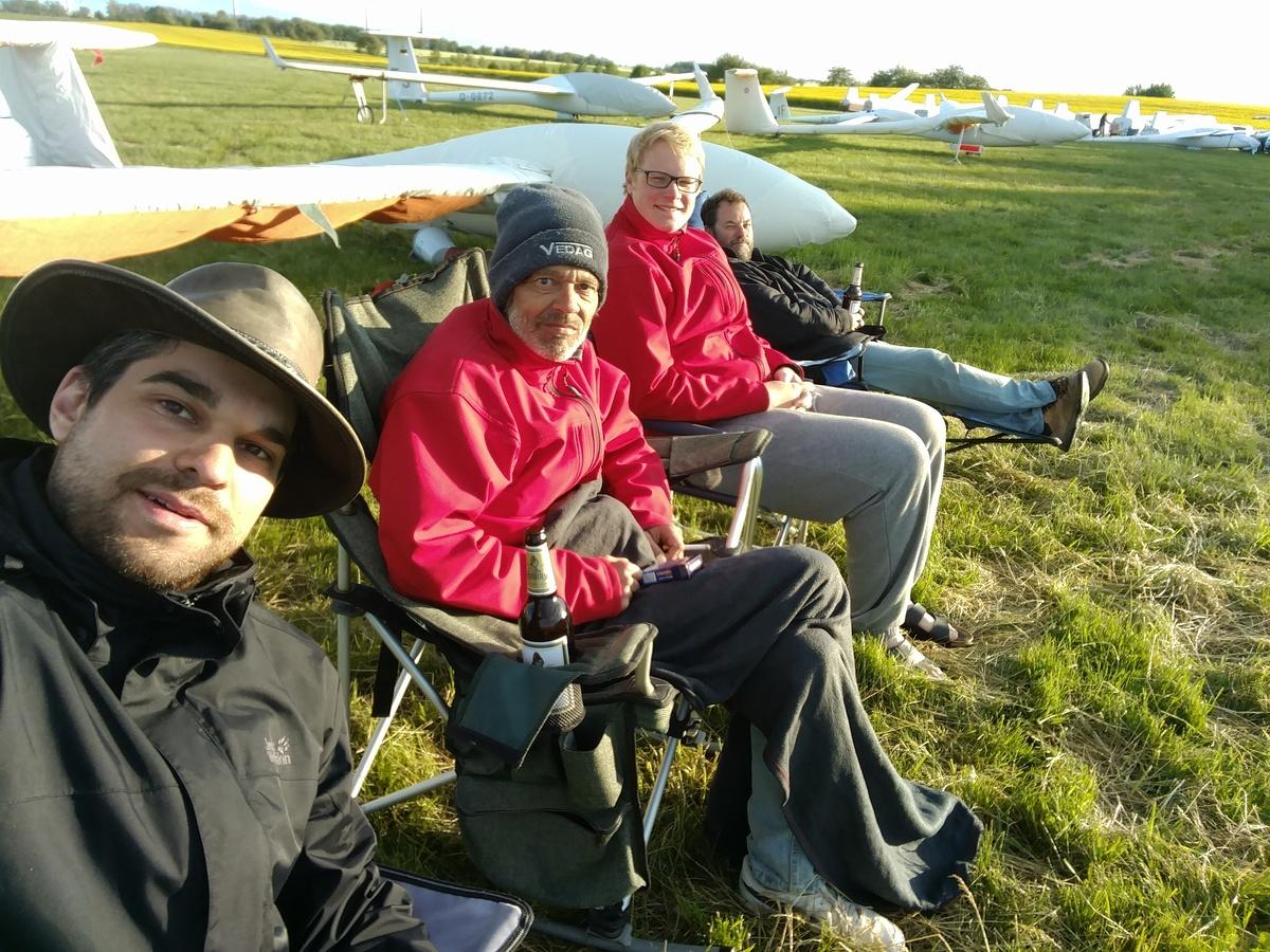 Und das erste wohlverdiente Bier nach langer fahrt in Canitz! Wieder mit dabei waren Jan-Eric und Rainer mit der Whiskey-Alpha (Arcus T), Piddy mit der Yankee-Papa (Std. Libelle WL) und unser Rückholer Jörg (BESTER RÜCKHOLER EVER!!!!!)…
