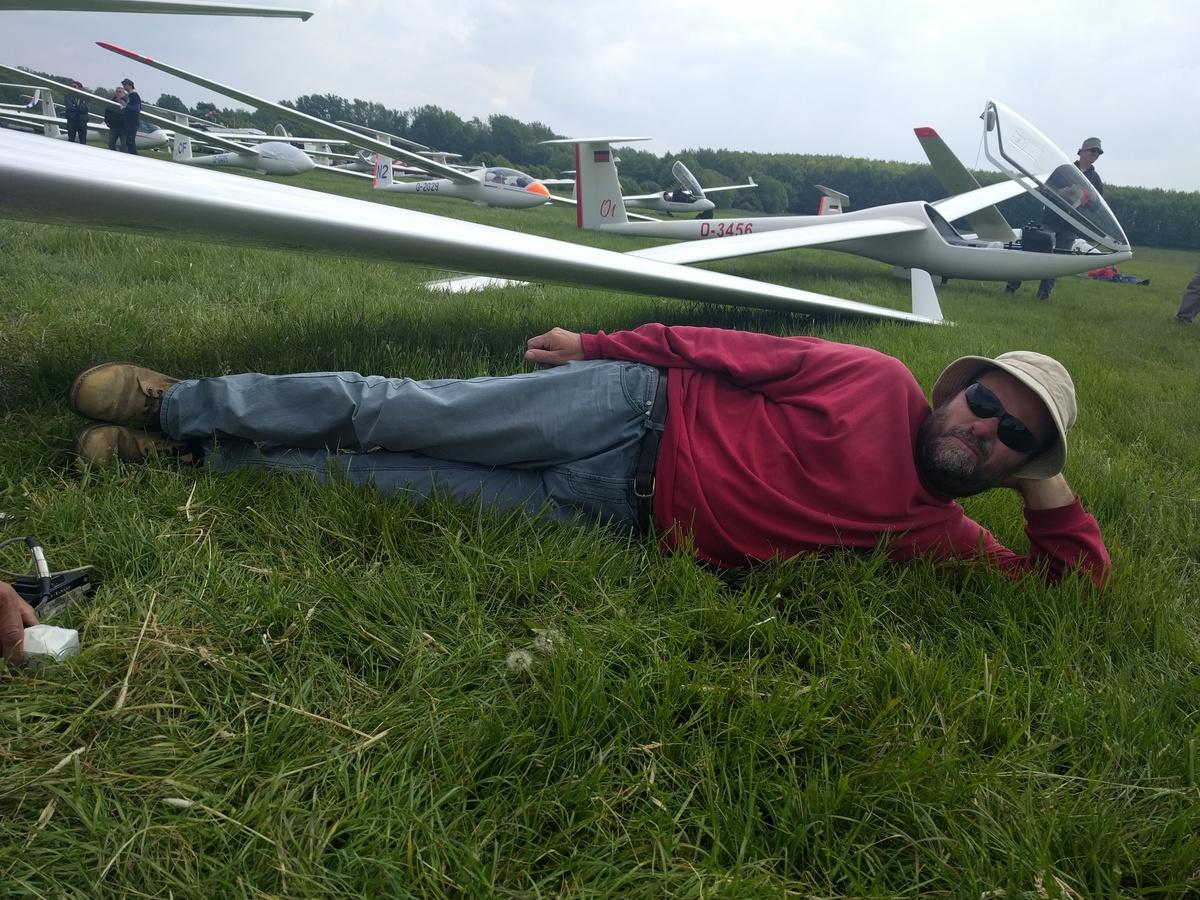 Hatte auch Ewigkeiten Zeit dort, mein Rückholer kam erst drei Stunden später weil in Canitz doch noch geflogen wurde – obwohl ich nur 8km vor dem Platz lag. Einige sind auch rumgekommen, die kleine Club-Klasse ist aber an dem Tag zu nem Großteil direkt wieder gelandet.