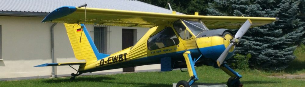 Ausgemusterte PZL-Wilga BT, die mich im Mai in Riesa sogar noch geschleppt hatte. Man beachte die Ölwanne, die ständig darunter liegt 😉